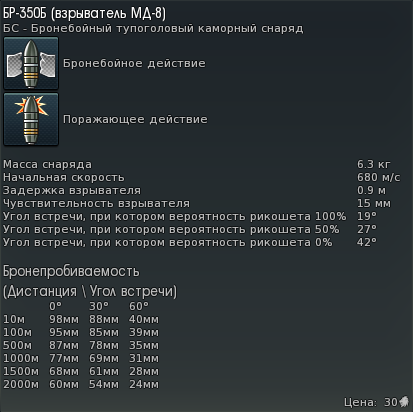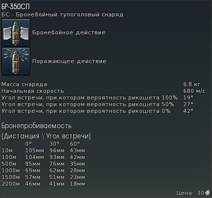 - Подкалиберный снаряд времён Второй мировой войны (обычную «катушку») желательно использовать только когда не хватает бронепробиваемости каморным снарядом. БПС плохо работает по наклонной броне, так что лучше выцеливать плоские поверхности.